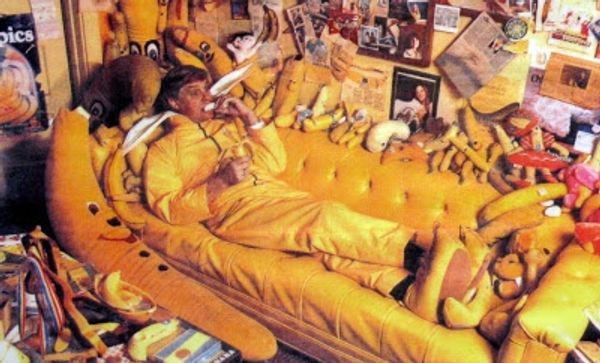 This photo was taken in the South East corner of the Altadena IBC headquarters many years ago. Visitors cracked up that Ken had a yellow BANANA couch! Photo was taken by one of 12 press agencies and published in numerous magazinesl